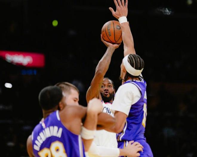 在东契奇的梳理之下,湖人此战一共有4名球员得分上双,其中里夫斯14中11,打出了31分、9个篮板、3次助攻和3次抢断的全面数据,四旬老汉詹姆斯则在和莱昂纳德的正面对决中占据上风,靠着15投9中的发挥,用25+6+6+1+1填满了数据栏,同时把小卡的命中率限制到了14中6。