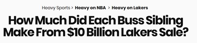 在最新一期播客节目中,ESPN名记文霍斯特透露,长期担任湖人队总裁的珍妮-巴斯及她的5个兄弟姐妹在出售球队多数股权后,每人都获得了丰厚的报酬。“不管100亿美元的总估值如何,我听说巴斯家的每个子女在各项因素核算完毕后,拿到的支票金额都在近10亿美元,这是我了解到的情况。”